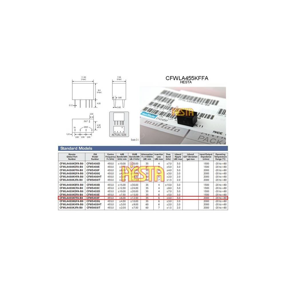 Ceramic filter 455kHz +/- 6kHz - muRata - 455F, type: CFWLA455KFFA-B0, CFW - 455 kHz F, replaces ALFY455F made by Toko, LT455FW, CQ 33-455F, wide filter of second IF, L72-0315-05, Kenwood TS450, TS-690 CF1